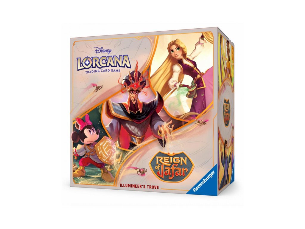 Největší poklad pro každého fanouška Lorcany! Illumineer's Trove je prémiové balení z edice Reign of Jafar, které nabízí nejen boostery, ale také stylové příslušenství a úložný box pro pravé sběratele i vášnivé hráče.