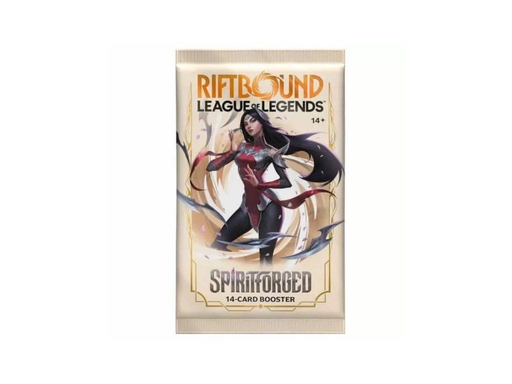 Riftbound: League of Legends – Spiritforged Booster je rozšiřující balíček pro karetní hru Riftbound: League of Legends TCG, druhou edici nazvanou Spiritforged. Každý booster obsahuje 14 náhodných karet z poolu více než 220 karet a 60+ alternativních art verzí, včetně šampionů, legendárních karet a nových herních mechanik.